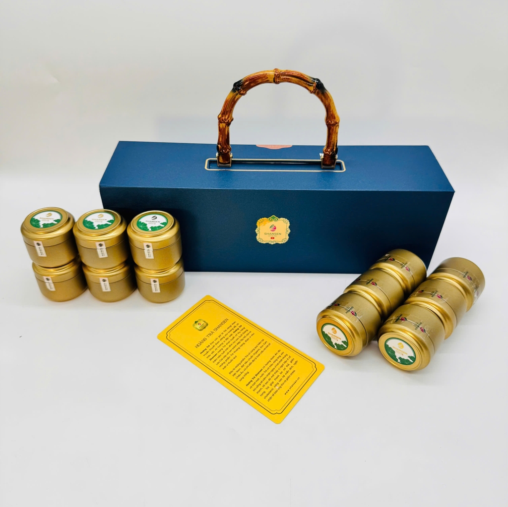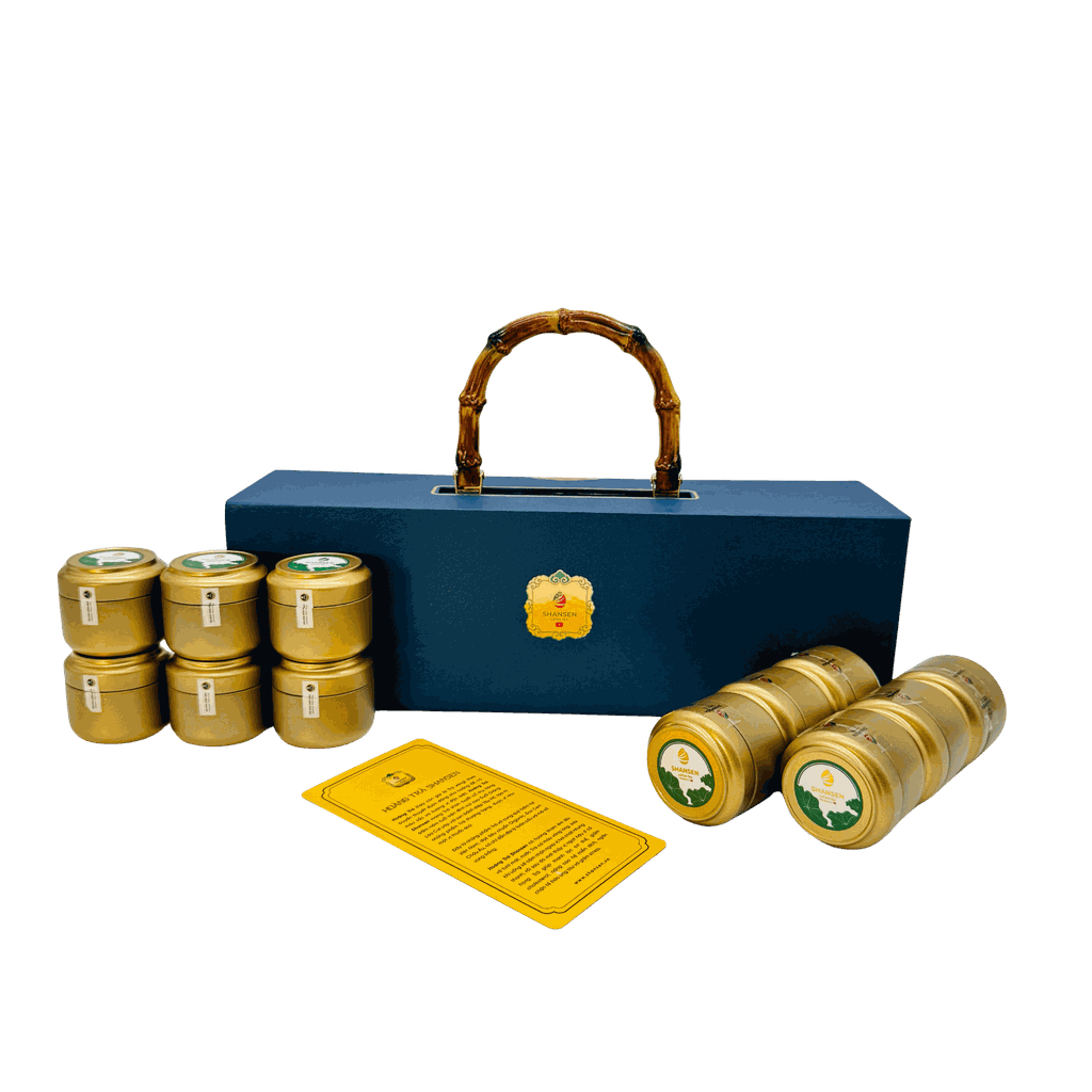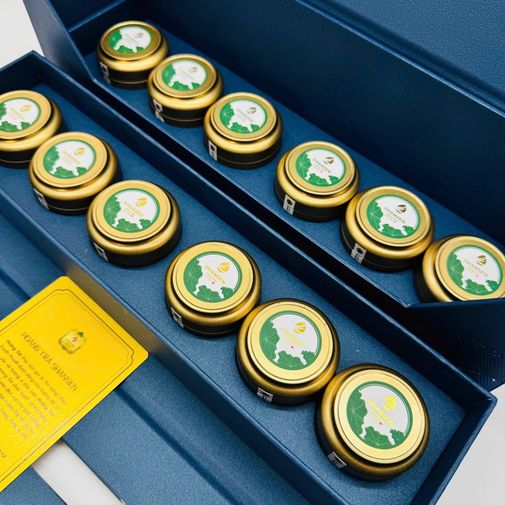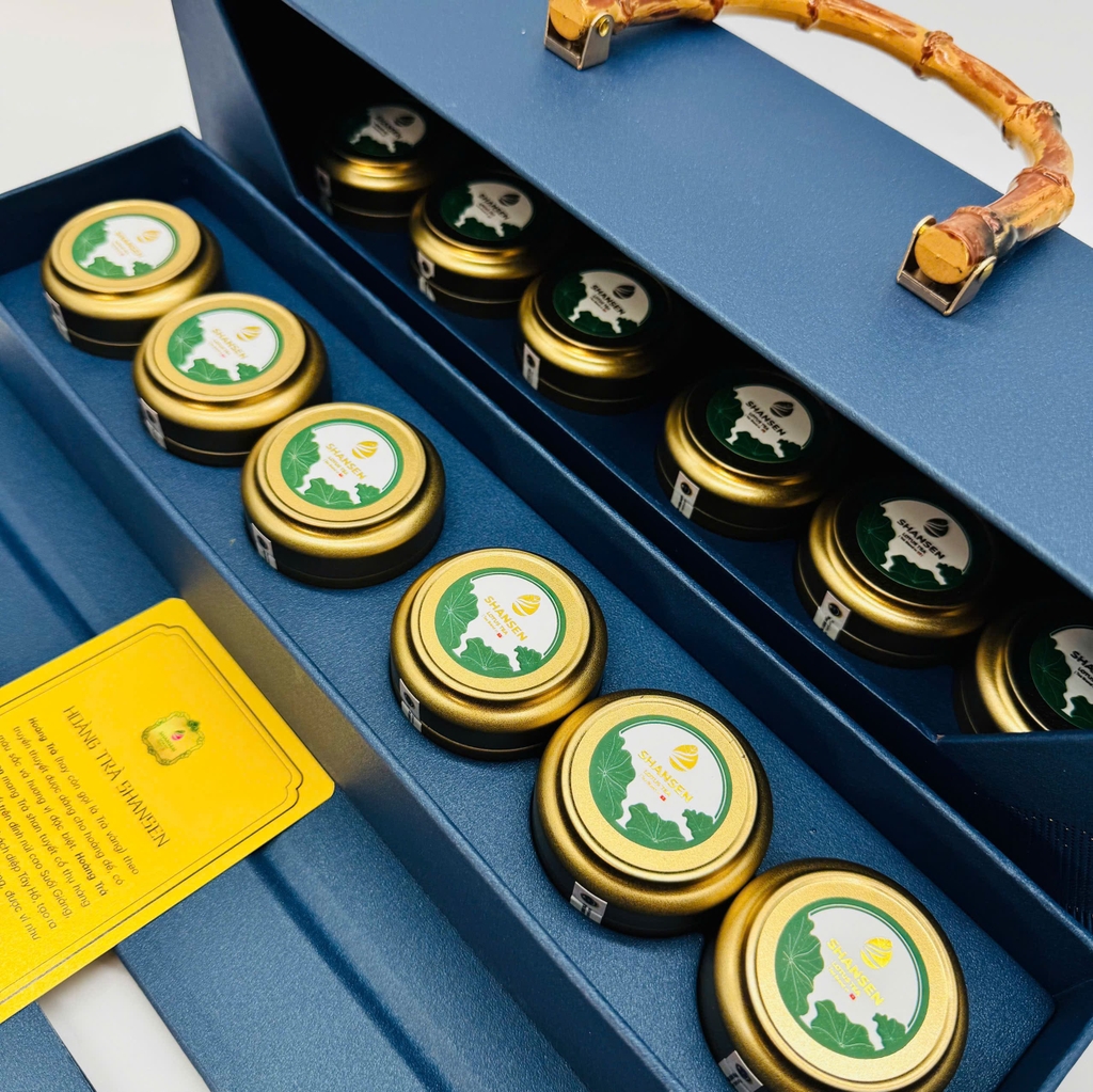 Set Hoàng Trà Shansen 12 là món quà mở đầu đầy ấn tượng trong Bộ sưu tập Tết Bính Ngọ 2026. Bộ sản phẩm gồm 12 hũ trà tinh tuyển, đại diện cho 12 tháng đủ đầy, viên mãn. Mỗi hũ trà chứa đựng những búp trà thượng hạng được chế biến theo kỹ nghệ truyền thống, đem lại hương thơm thanh khiết và vị trà sâu lắng.